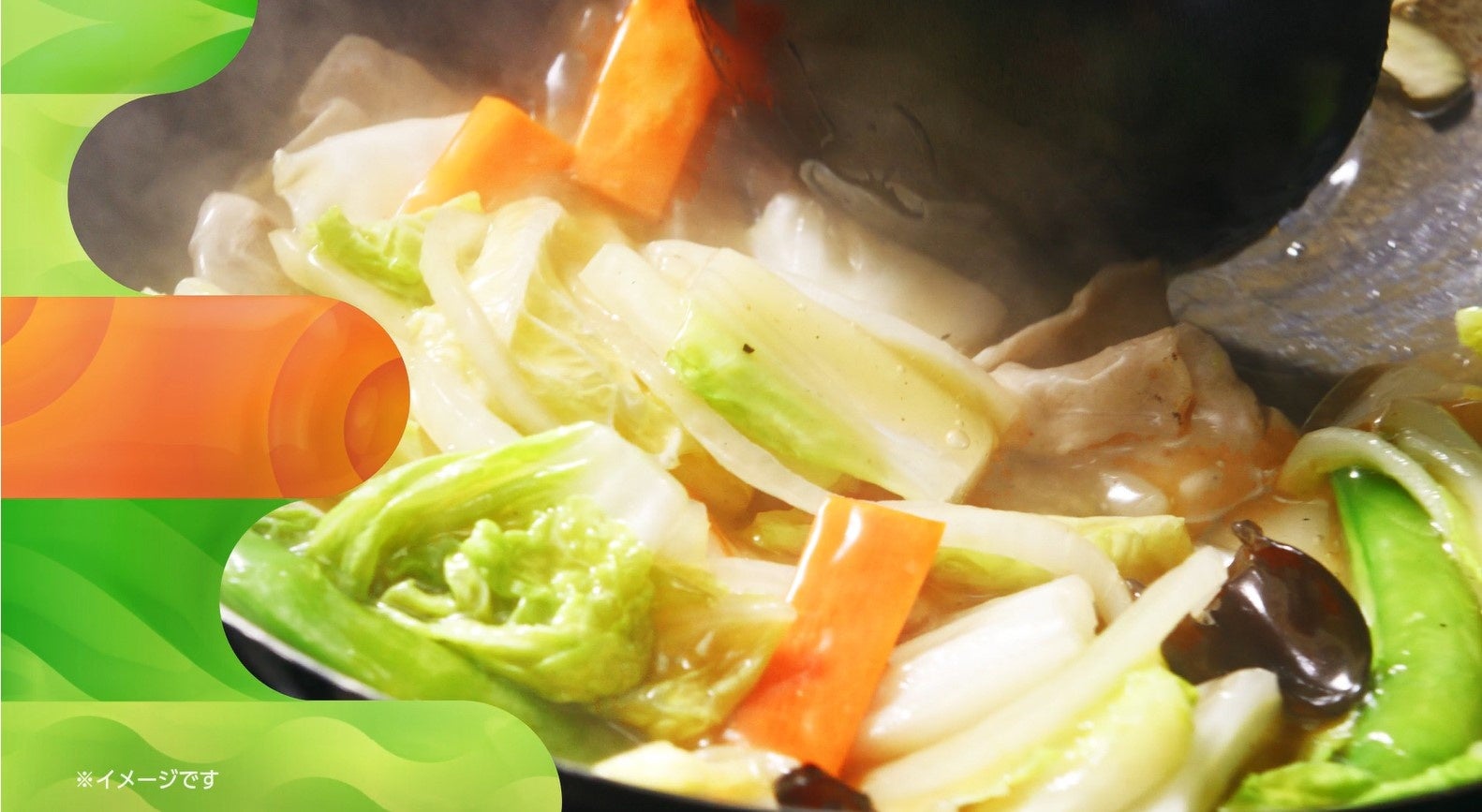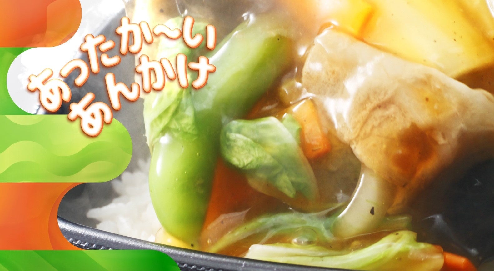 たっぷりの野菜に、とろーりあったかな中華あんを絡めた『中華あんかけごはん』の美味しさを、躍動感のあるシズルを中心に描き、アニメーションを組み合わせることで、明るく、元気に表現しました。