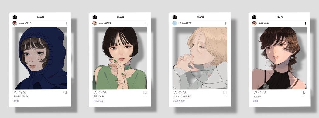 銀座 蔦屋書店と京都 蔦屋書店にて、イラストレーター凪の作品集『雨とほくろ』の出版記念展を開催。四季の移ろいをメイクで表現。