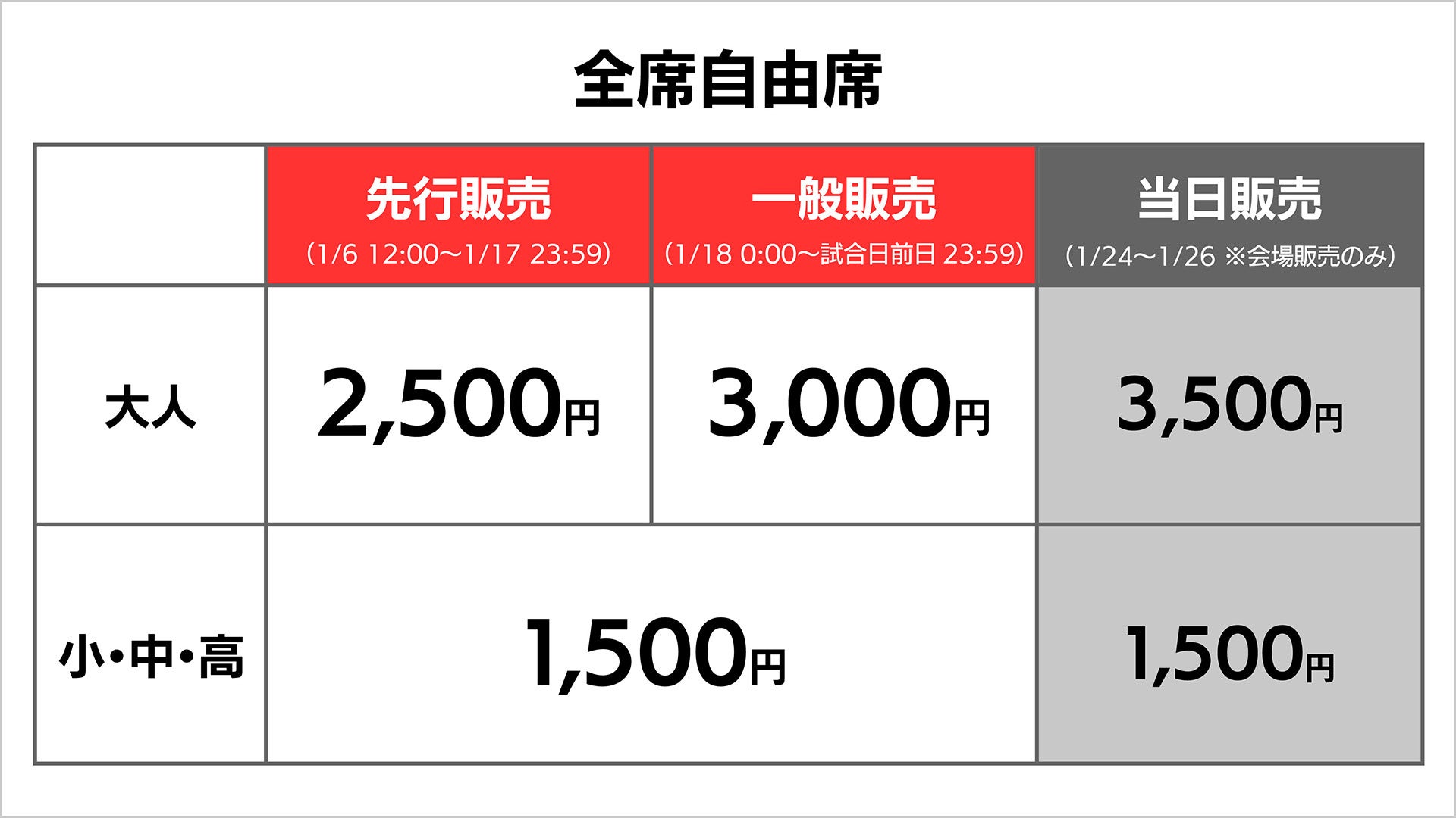 - 先行販売:大人 2,500円/小・中・高 1,500円