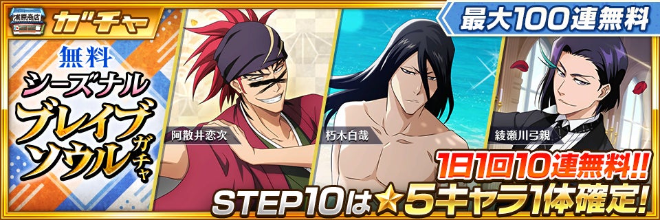 期間中、最大100連を無料で引ける「無料シーズナルブレイブソウルガチャ」を実施!