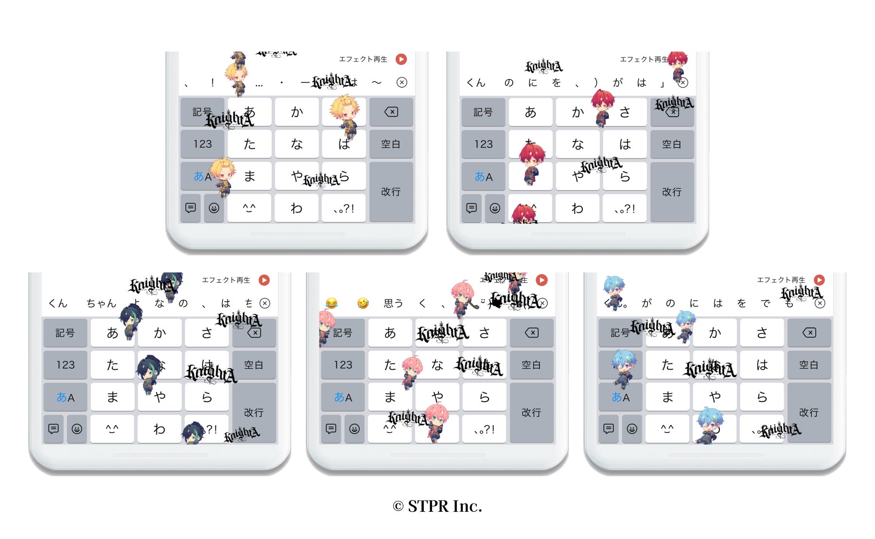 ユーザーが文字を入力し、変換候補より特定のキーワードを選択することで画像や動画がキーボード上に現れる機能です。当コラボでは特定のキーワード「Knight A」「騎士A」「歌い手」や、Knight A - 騎士A –のメンバーの名前などを入力するとエフェクトが再生されます。今回のコラボならではのエフェクトをお楽しみください。