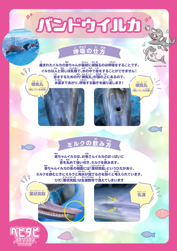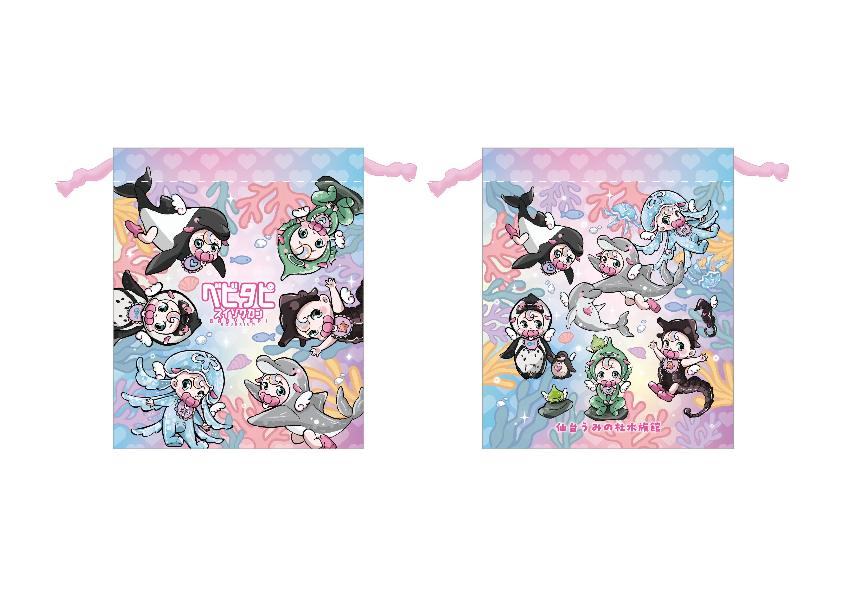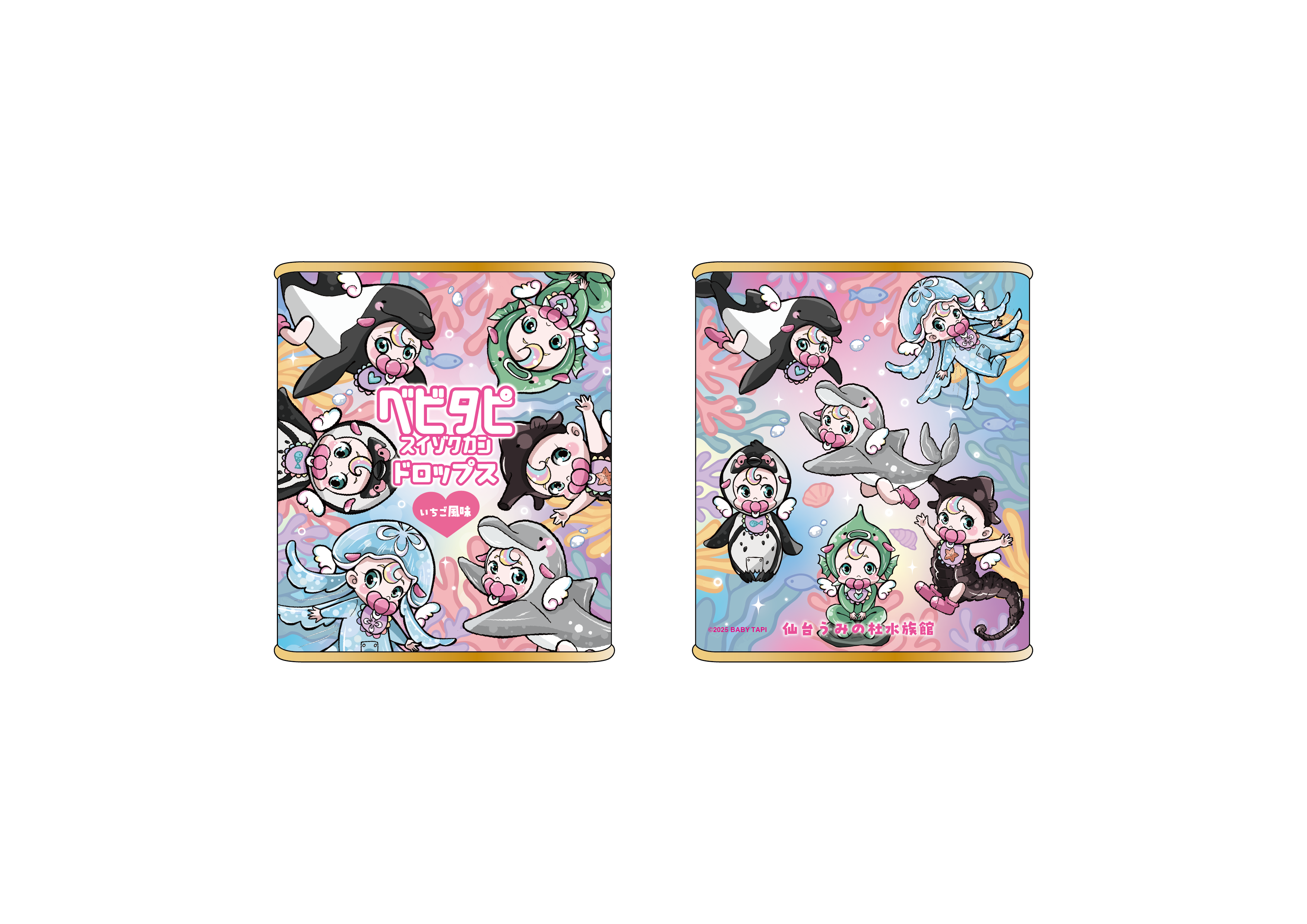 「べビタピ スイゾクカン」では、べビタピちゃん&べビタピ総監督のenn、原宿店店長のしなこがプロデュースした、べビタピちゃんが仙台うみの杜水族館の海の生きものたちに扮して、一緒に仙台うみの杜水族館を楽しむ書き下ろしイラストが登場します。