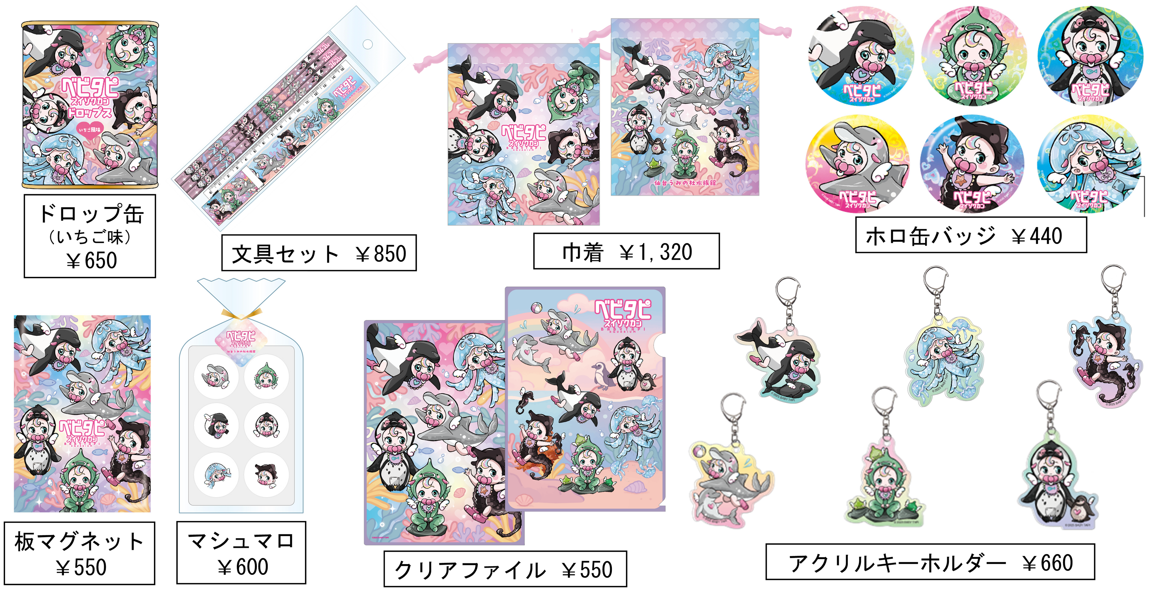 さらに、「べビタピコラボ水槽」や「べビタピ生きもの解説パネル」、「フォトスポット」など館内各所に展開します。また、書き下ろしイラストを使用した商品をはじめ、べビタピの世界観をイメージしたグッズやフードメニューを多数販売し、仙台うみの杜水族館でしか体験できない楽しい企画が盛りだくさんです。