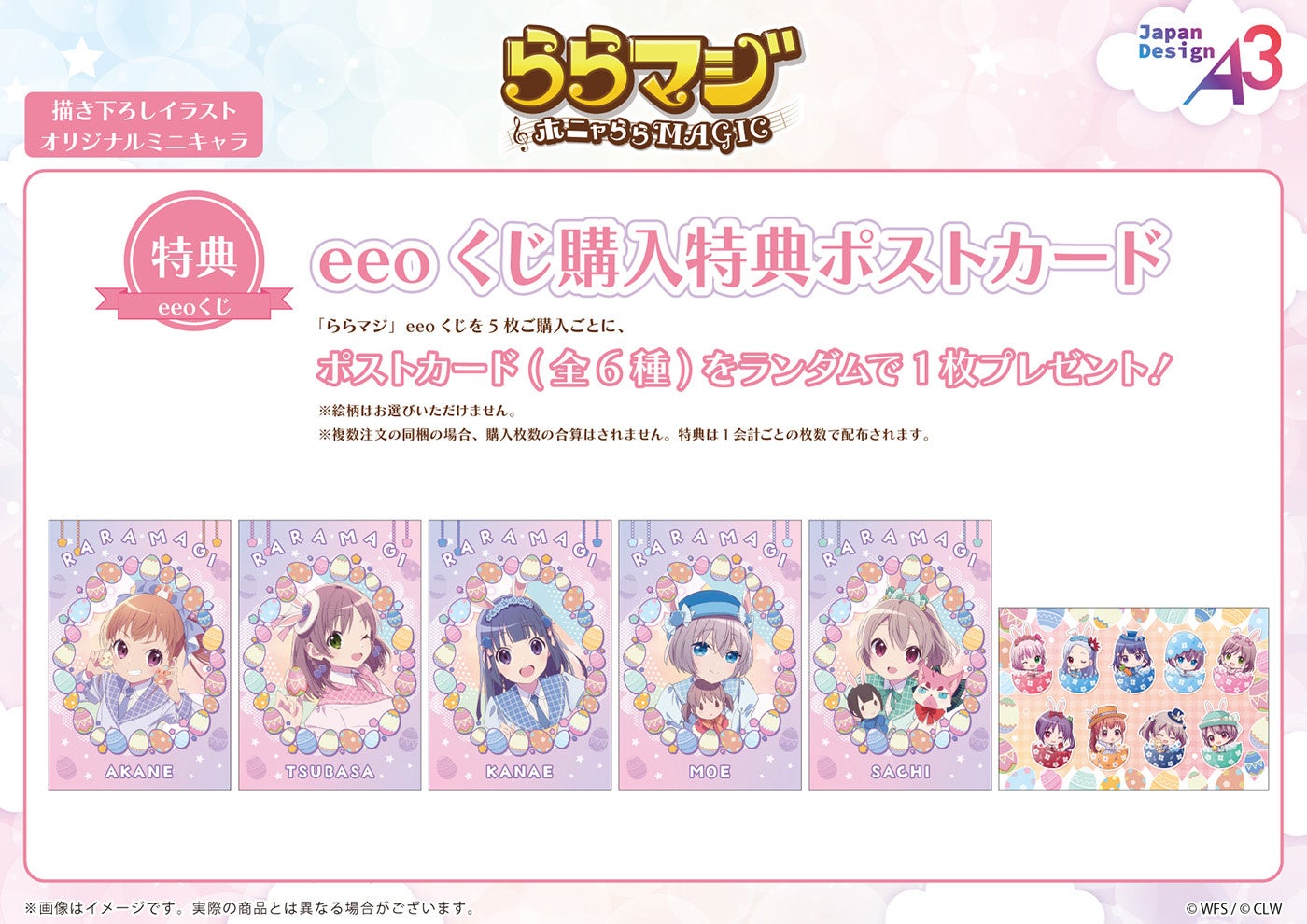 『ららマジ』の「eeoくじ」を1会計5枚ご購入ごとに、購入特典としてポストカード(全6種)をランダムで1枚プレゼント。