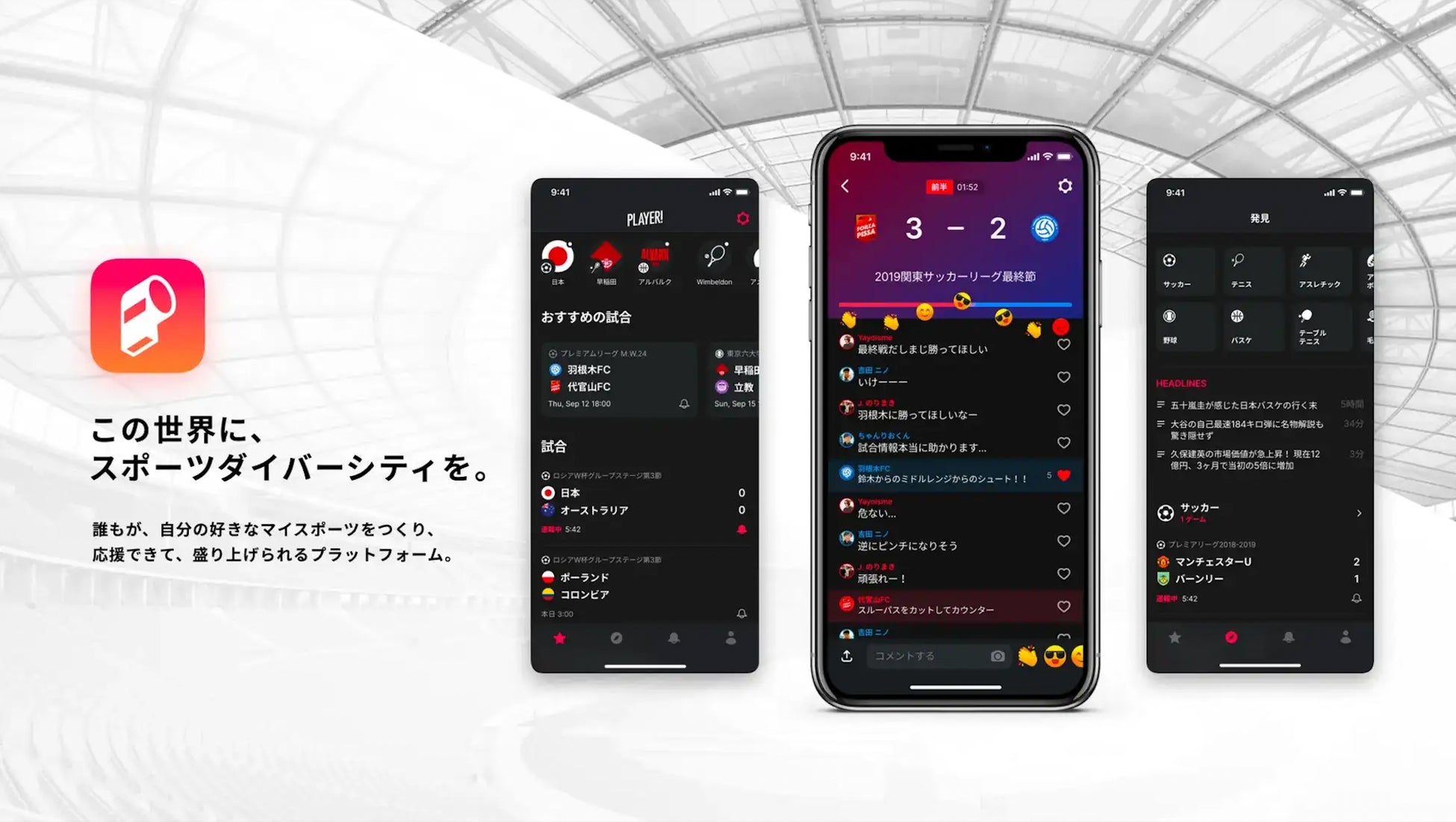 Player!は、誰もが、自分の好きなマイスポーツをつくり、応援できて、盛り上げられるプラットフォームです。