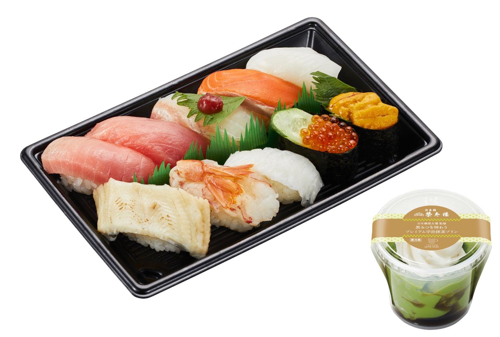 また、かっぱ寿司の人気スイーツ『プレミアムプリン』や日本橋榮太樓監修『黒みつを味わうプレミアム宇治抹茶プリン』とのセット商品も販売いたします。