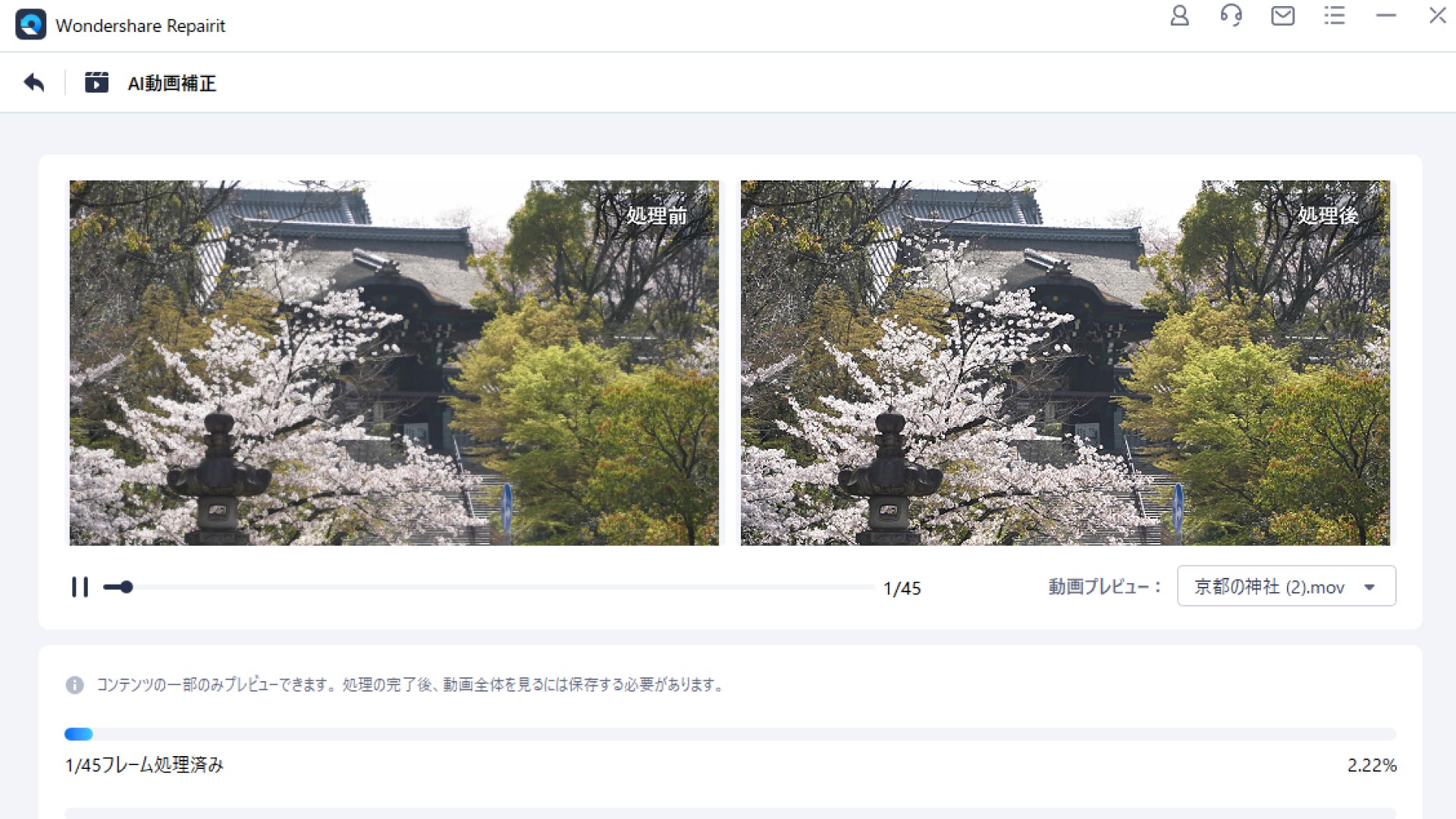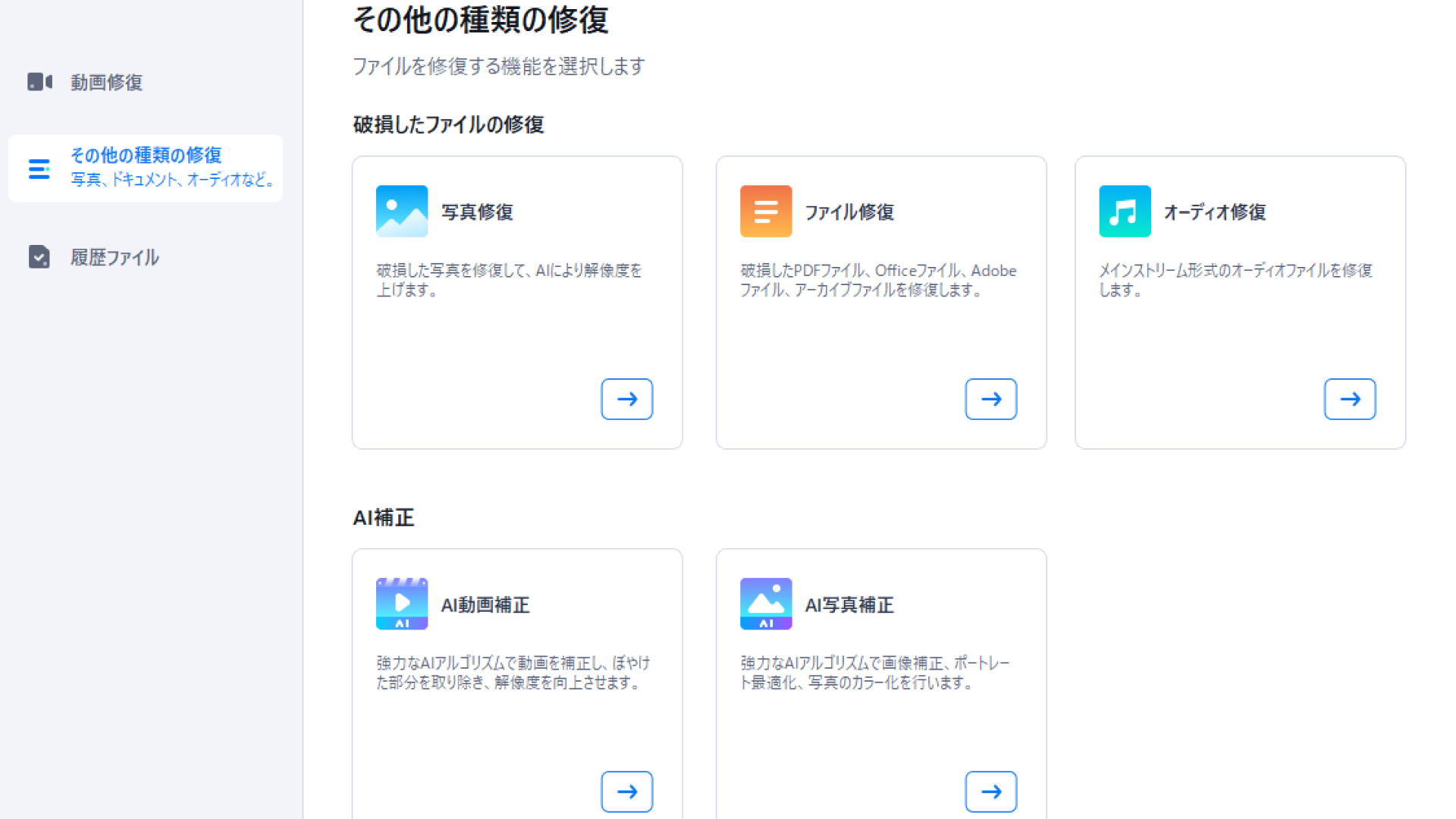 『AI動画/写真補正』機能が新たに搭載されファイル修復の精度が上がりました