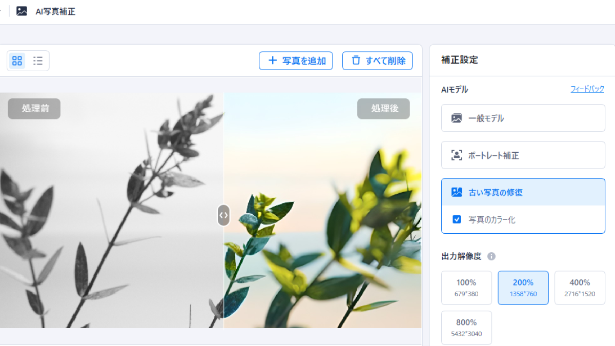 また画像の状態に合わせて補正設定を変えることで、思い通りの修復が可能になります。