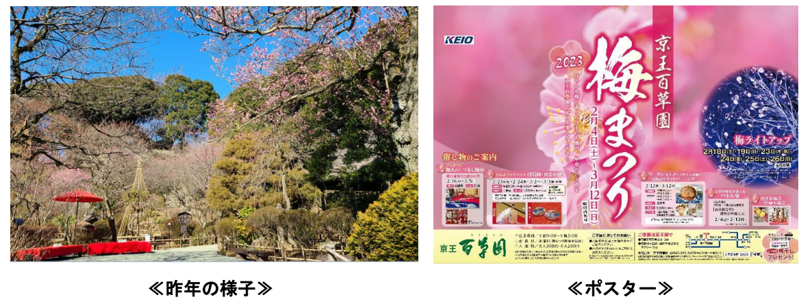京王電鉄株式会社(本社:東京都多摩市、取締役社長:都村 智史)が運営する「京王百草園」(住所:東京都日野市百草560)では、2月4日(土)から3月12日(日)まで、恒例の「梅まつり」を開催します。