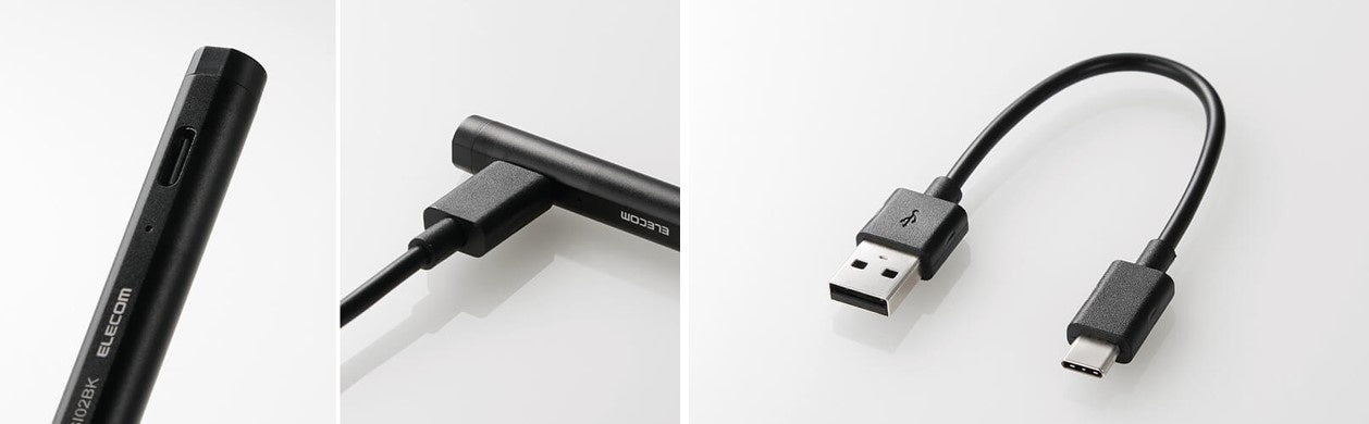 重さは約15g、本体の直径は約9.5mmで、軽くて持ちやすいデザインです。ペアリング作業は不要で、電源を入れるだけですぐに使用できます。付属のUSB Type-C(TM)(USB-C(TM))ケーブルで充電ができ、フル充電で約45時間の連続使用が可能です(※)。充電状態や電池残量を確認できるLEDインジケーターを装備しています。