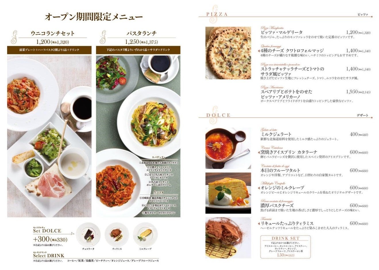 チェントペルチェント御経塚店では、少しずつ色々食べたいを叶える定番メニューで1番人気の「ウニコランチセット」や、初の試みとなるポークスペアリブとフライドポテトを山盛りトッピングした豪快なピッツァ「スペアリブとポテトをのせたピッツァアメリカーノ」など、オープンから7月中旬までの期間中に販売するメニューが決定いたしました。