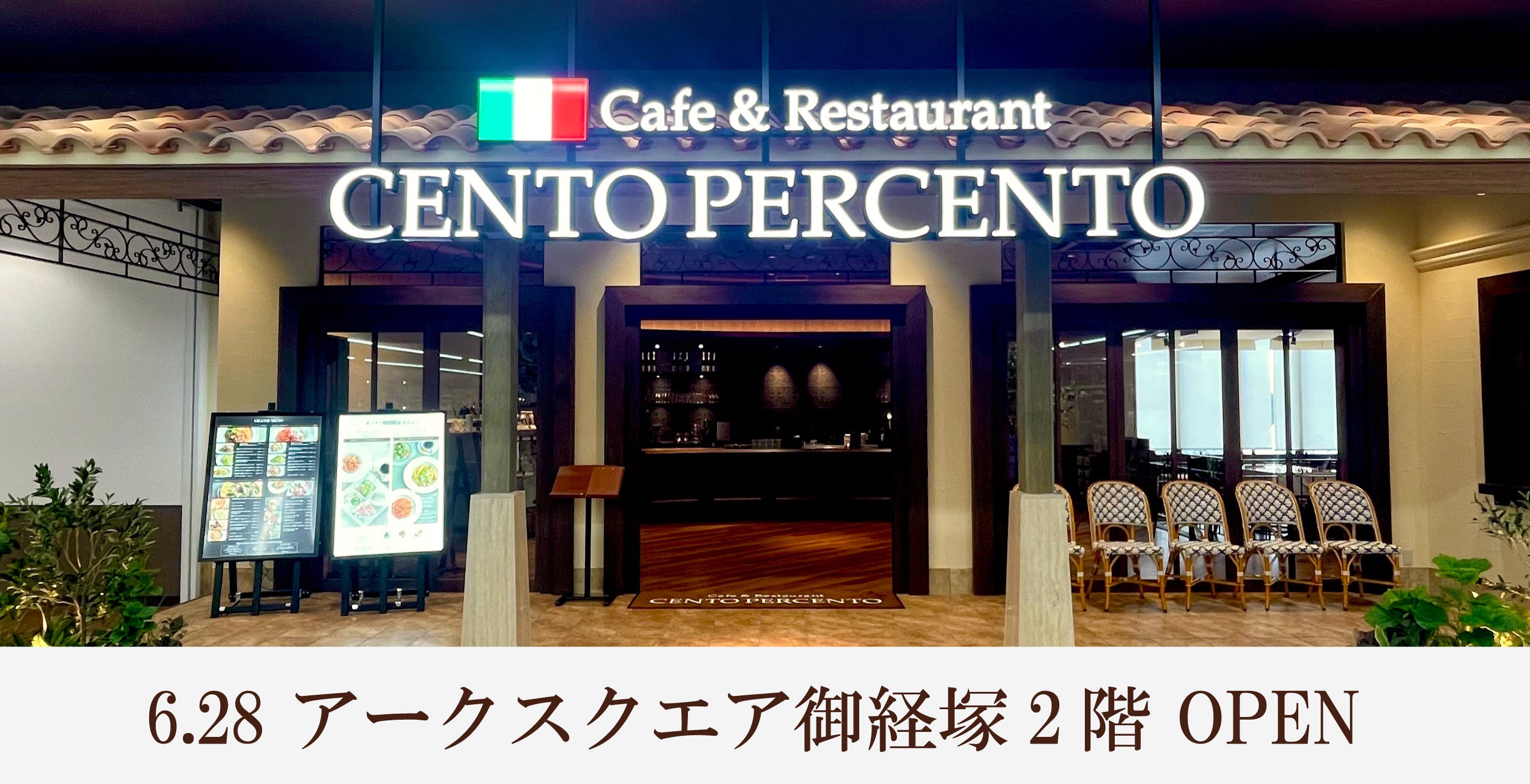 「cento percento(チェントペルチェント)」とは、イタリア語で“100%” の意味。忙しい日常から少しだけ離れて、お友達やご家族と気軽に楽しんでいただける場所を。本場のテイストを大切にしたイタリア料理を、シックでゆとりのある空間で提供する大型ホームセンター内のカジュアルレストランです。お一人でも、ご友人やご家族でも、気軽に普段使いできる家庭的な雰囲気とシーンを選ばない多彩なメニューの数々。飾りすぎないあたたかなサービスと、毎日食べても飽きることないシンプルなお料理で100%のおもてなしをご提供します。