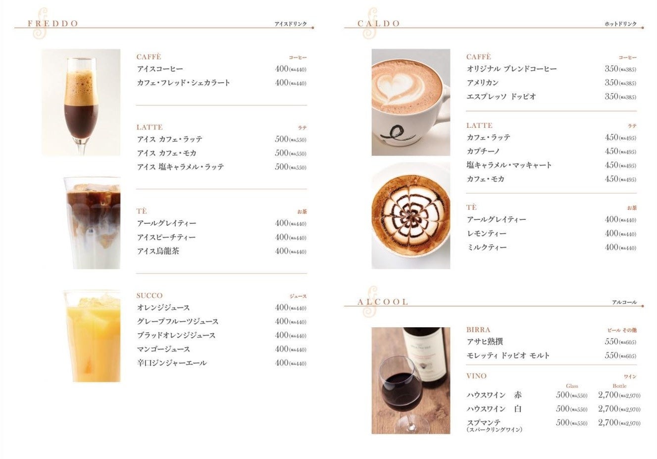 お食事はもちろん、ティータイムやちょっと一息つきたい時には、店舗で焙煎している香り豊かなコーヒーやデザインカプチーノ、アルコールはグラスで飲めるワインがお楽しみいただけます。
