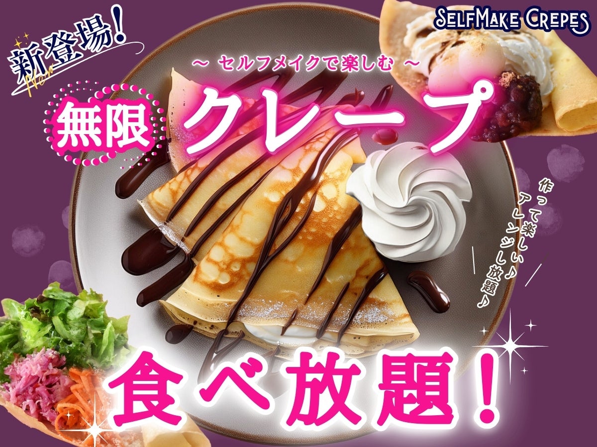 【新登場‼無限クレープ食べ放題‼】作って楽しい♪食べて幸せ♪アレンジし放題‼バラエティー豊かな食べ放題『ブッフェ フォールームス あべのキューズモール』にてセルフメイクスイーツの『クレープ』が新登場!