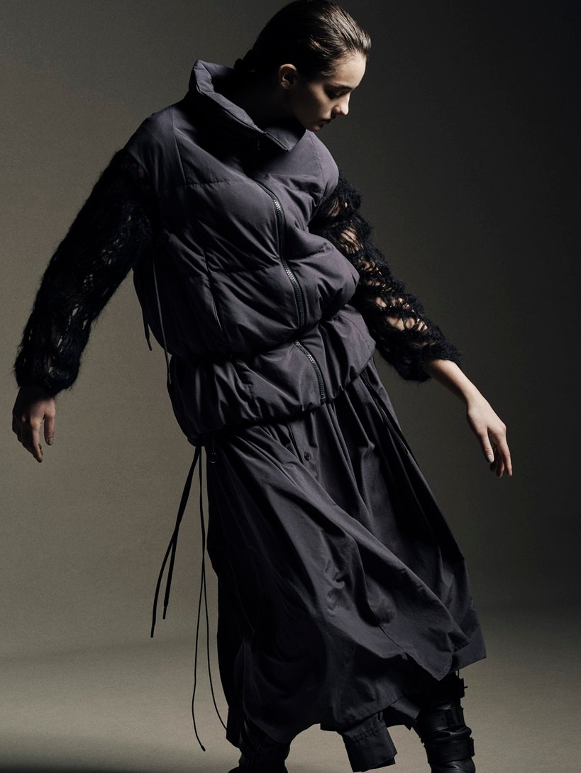 REGULATION Yohji Yamamotoの原点である「制服」の構造を継承しながら、そこにフェミニンという対照的な要素を組み込む。
