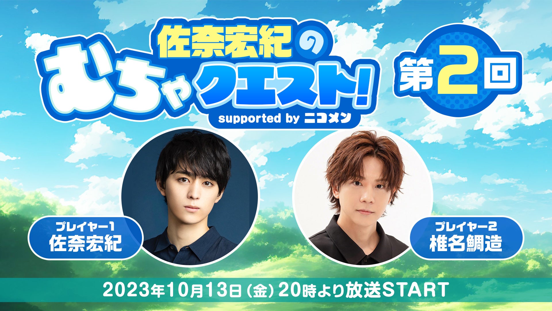 俳優・佐奈宏紀のレギュラー特番「佐奈宏紀のむちゃクエスト!」の第2回放送が、ニコニコ生放送にて10月13日(金)20時より放送決定いたしました。
