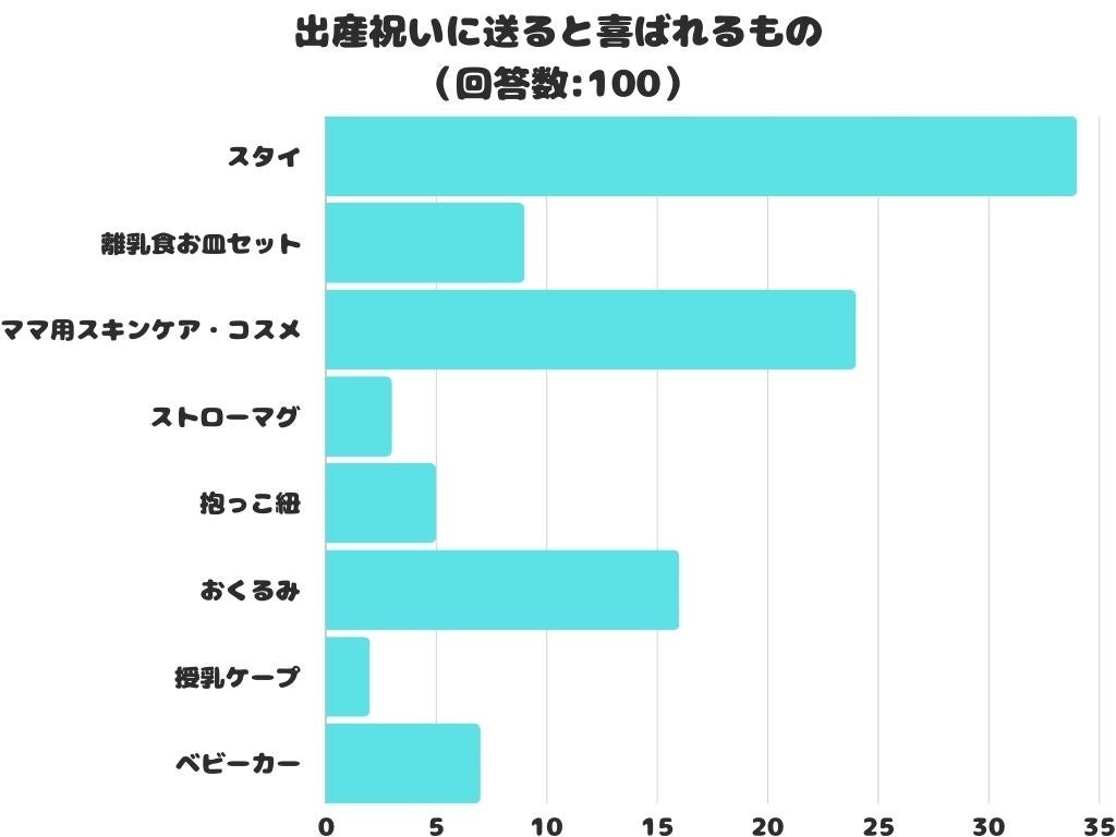 出産祝いに送ると喜ばれるものをアンケートにて調査したところ、1位は「スタイ」でした。