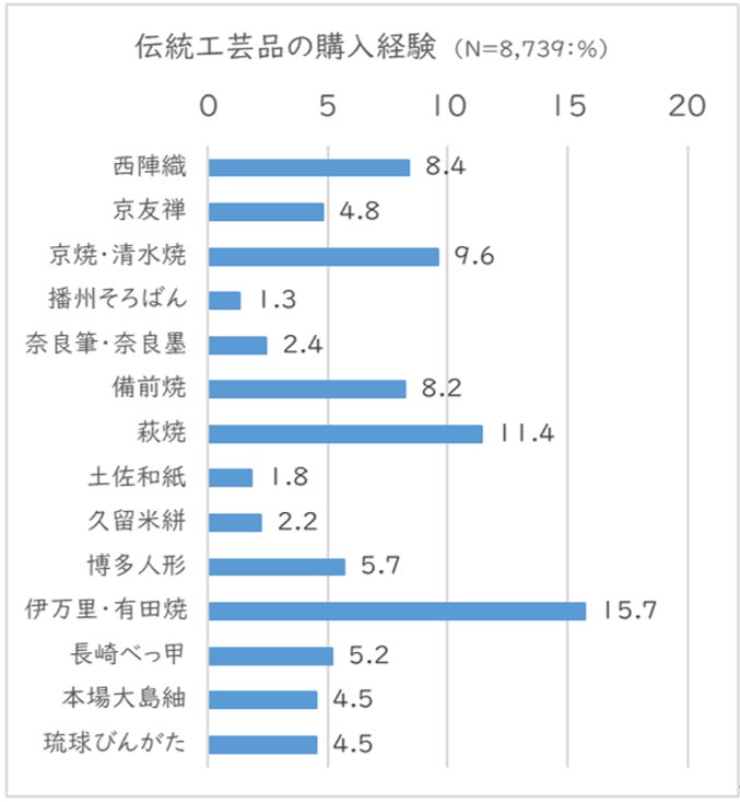 【伝統工芸品に関する調査】最も購入経験が高いのは、「伊万里・有田焼」15.7%