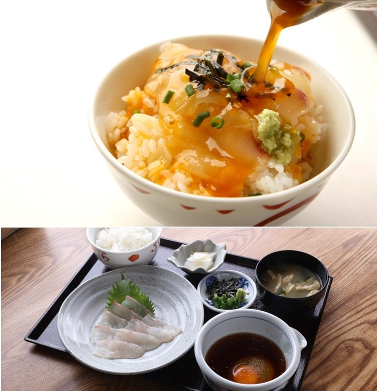 鯛の刺身を出汁醤油とたまごに絡ませ、熱々のごはんにのせ、さらにだし汁をかけてお召し上がりください