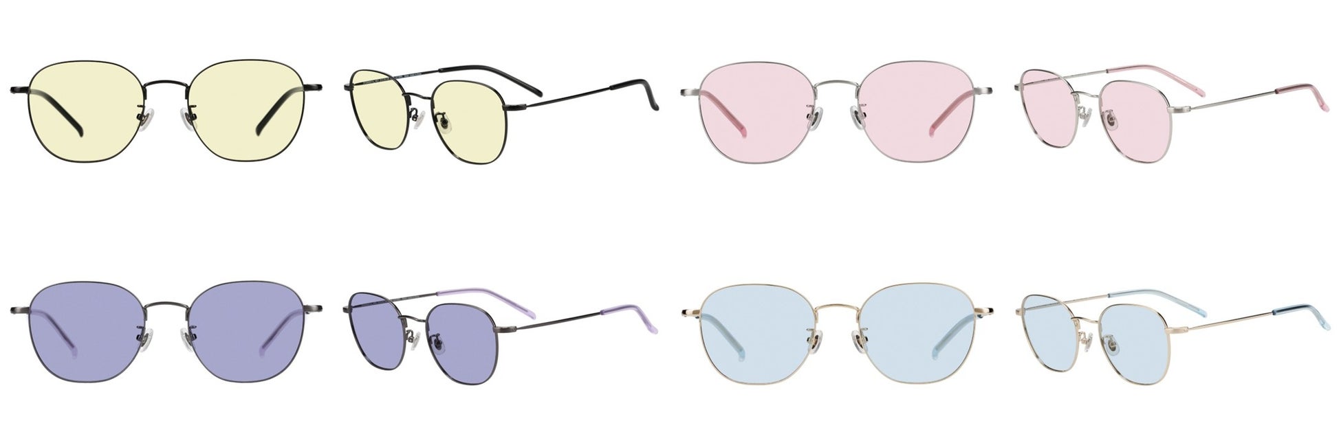 レンズカラーとテンプル先のカラーを統一してポップな印象に。