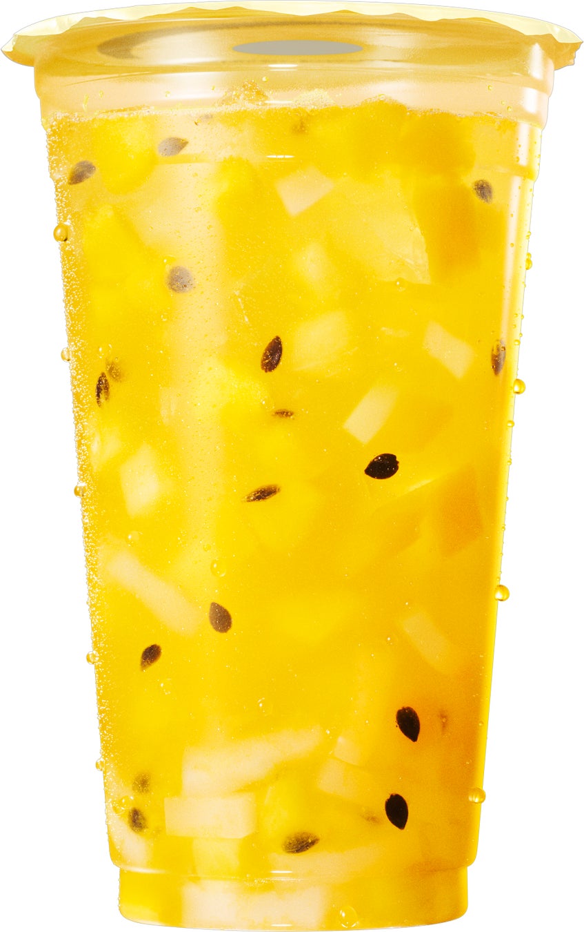 パイン・マンゴー・パッションフルーツと、ジャスミンティが出会って生まれたフルーツティ。ナタデココの食感に加え、3つのトロピカルフルーツのフレッシュさと酸味を兼ね備えたさわやかな果実のドリンクです。
