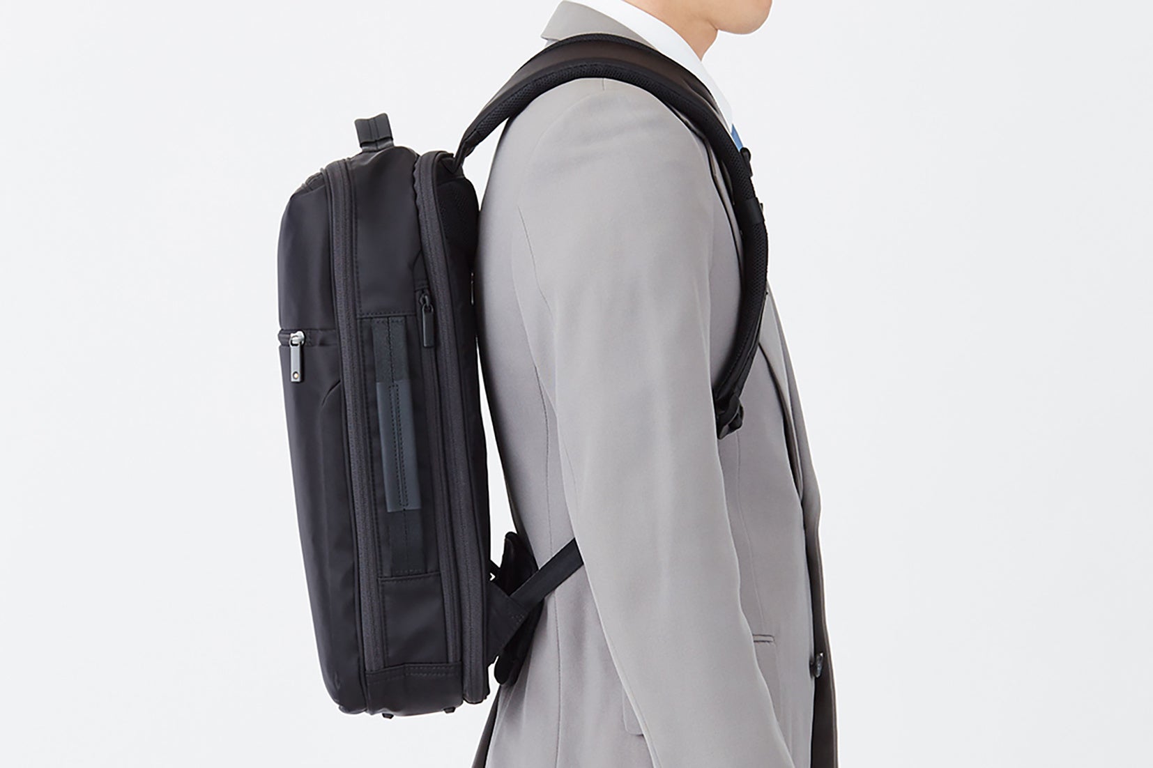 混雑した場所でも邪魔になりにくいスリムなボディに、収納力を凝縮したビジネスリュックです。