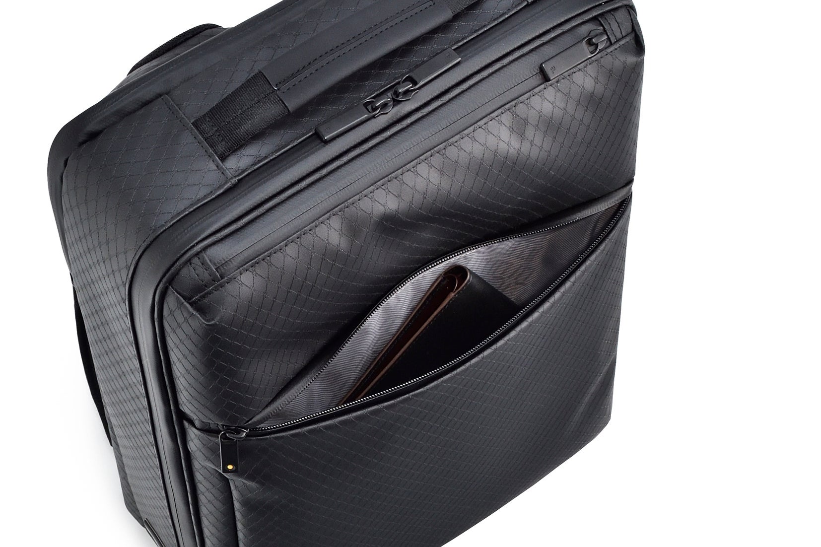 手に持つ、網棚に上げる、前に抱えるなど、状況に応じた複数の持ち方に対応します。