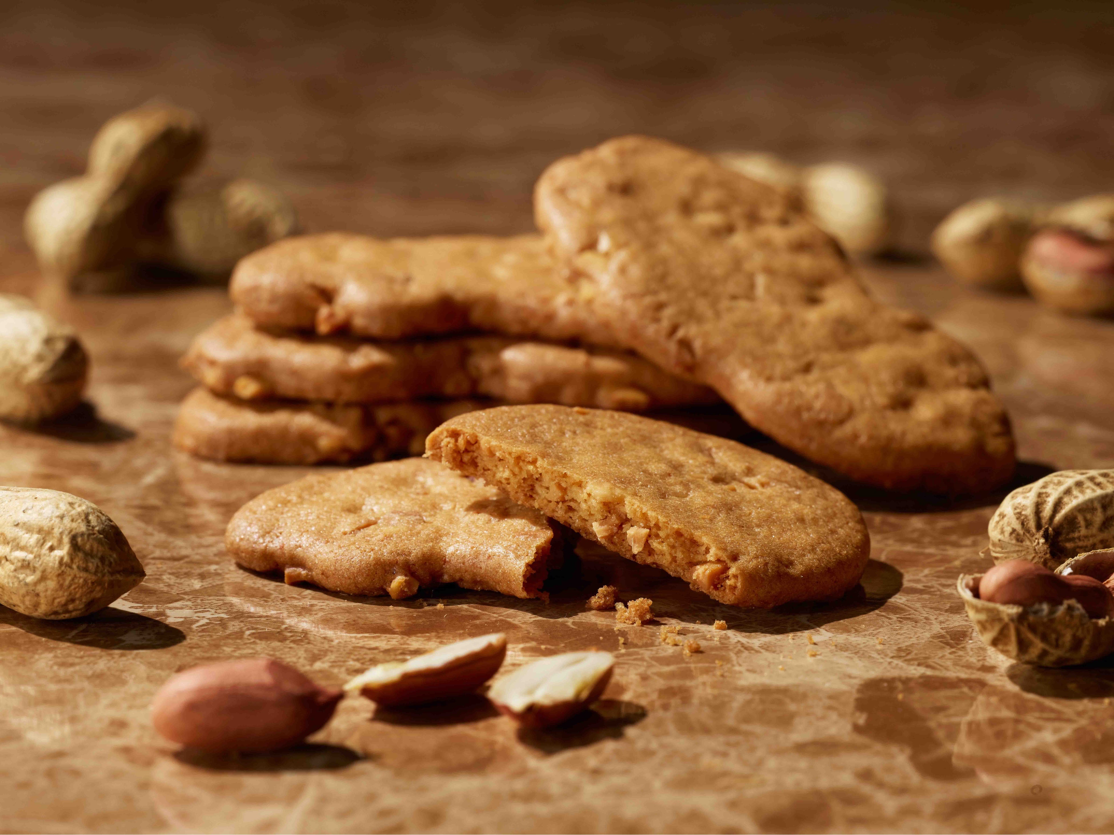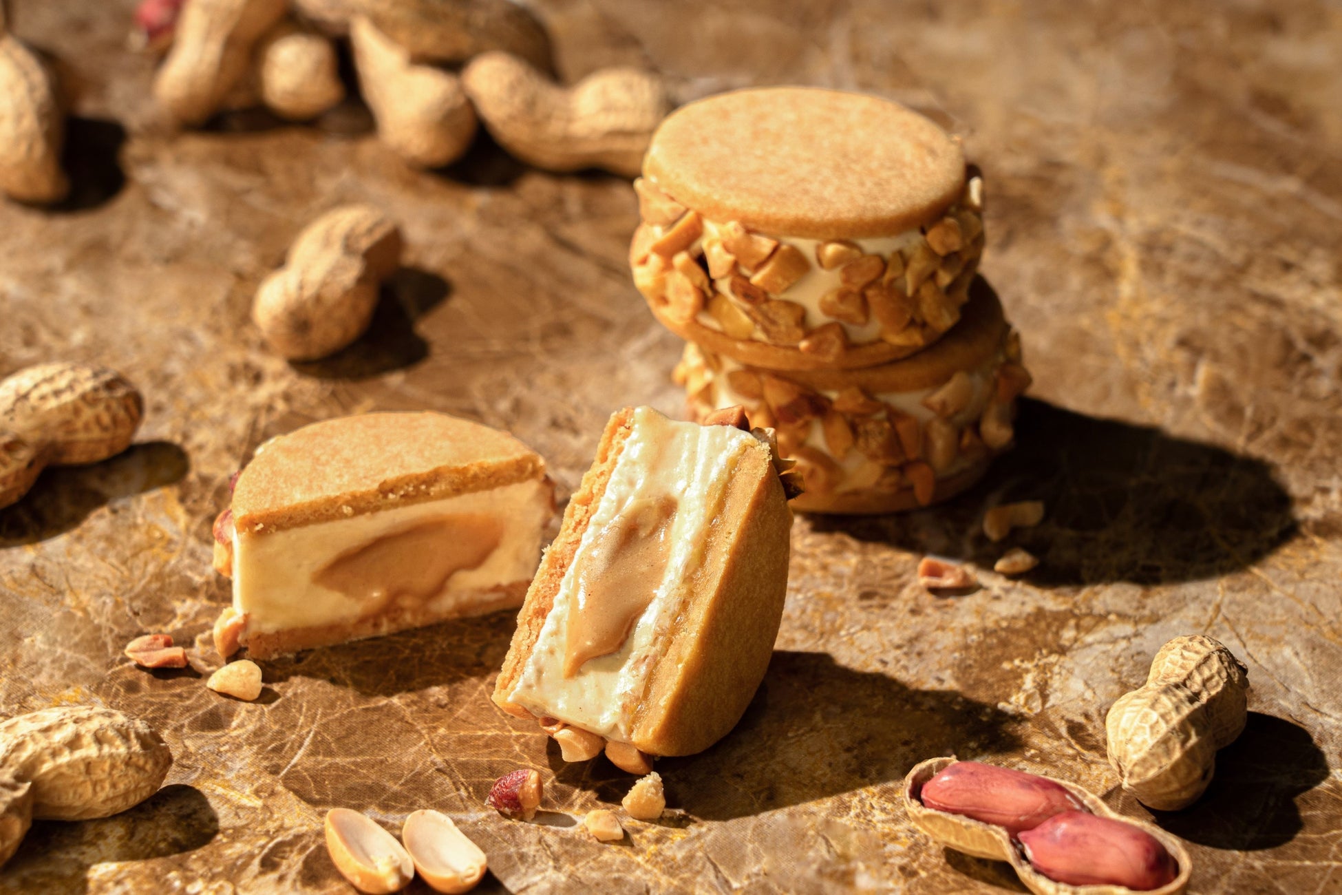 ピーナッツペーストと発酵バターを使用したなめらかなでコクのあるバタークリームに、ピーナッツクリームを閉じ込め、サクサクのクッキーで丁寧にサンドし、ピーナッツダイスをトッピング。