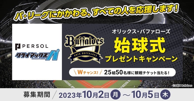 パ・リーグ公式スポンサーのパーソルグループとパ・リーグ6球団は、野球を通して日本全体に笑顔を届けていくために、10月20日(金)に京セラドーム大阪で行われる『2023 パーソル クライマックスシリーズ パ』ファイナルステージ注目の第3戦「パーソルDAY」の始球式ピッチャーを募集します。