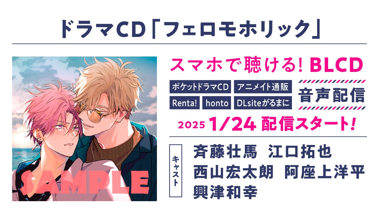 株式会社リブレ(本社:東京都新宿区、代表取締役社長:太田歳子)は、ドラマCD「フェロモホリック」を2025年1月24日に発売致します。https://www.b-boy.jp/special/pheromoholic/cd/