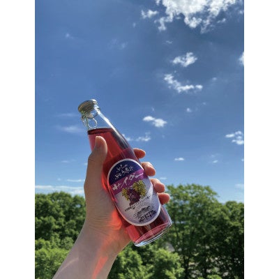 富良野産のぶどう果汁のおいしさをそのままサイダーにしました。炭酸でシュワッと爽やかに仕上げています。富良野産ぶどうストレート果汁が15%入っています。