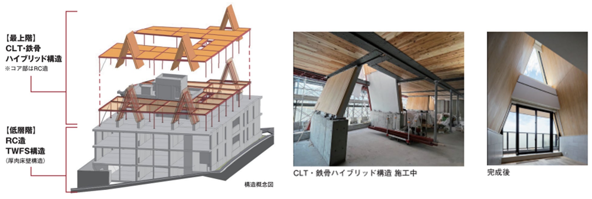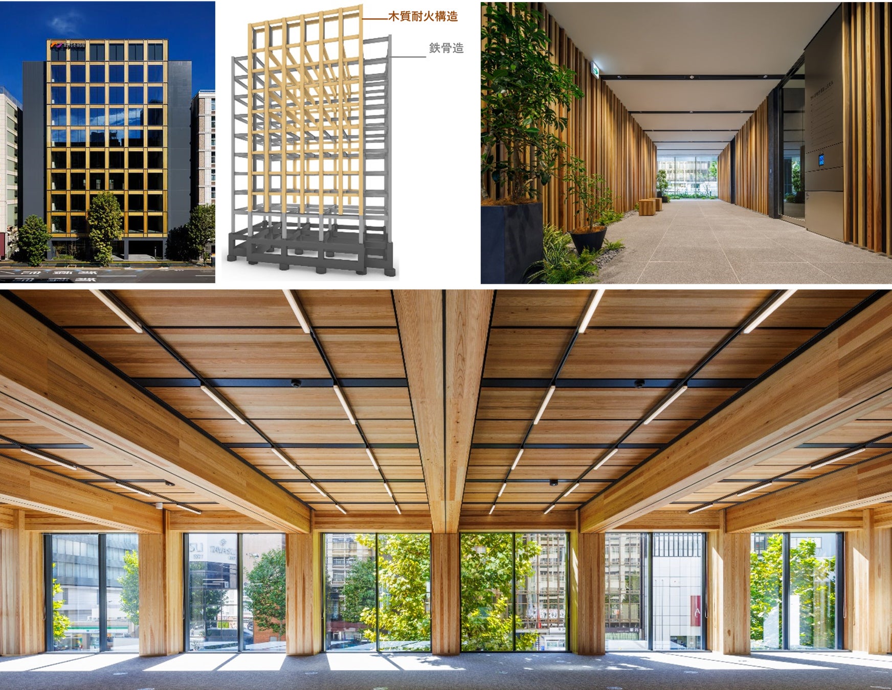 持続可能な社会の実現に向け、都心における良質な高層木質テナントオフィスのあり方を追求したプロジェクトである。既往の木質技術の発展・深化を通じて様々な技術的課題を合理的に解決し、都心における高層テナントオフィスの木質化のハードルを下げることで、木質建築の裾野を広げ、サステナブルな社会の実現の一助となることを目指した。