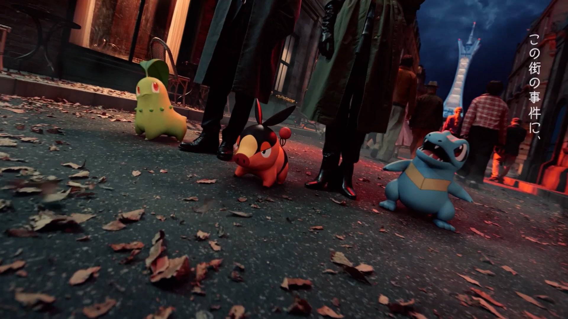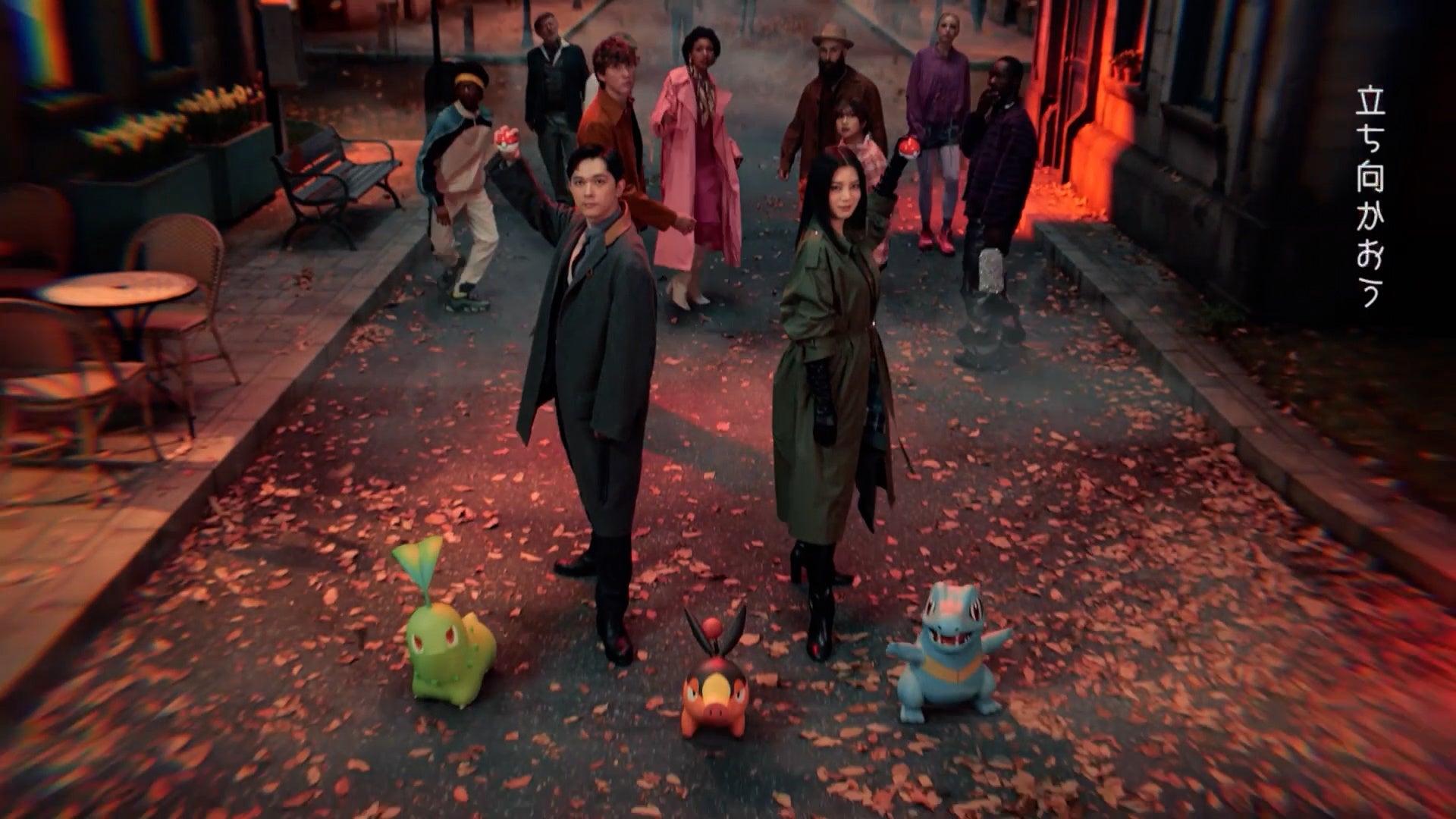 物語は、ミアレシティで何か事件が起きたのか、不安げな表情で歩く住民たちの姿から始まります。その人混みを逆方向に向かう吉沢亮さん。こちらを向いて「手を取り合えば、」と語りかけます。続けて池田エライザさんが「不可能はない。」と力強く答え、颯爽と進む二人。ミアレシティに潜む事件に立ち向かうべく、吉沢さんは「みんなと、」と言いながら池田さんの方を見て、池田さんは「ポケモンと。」と返します。そばにいるチコリータ、ポカブ、ワニノコたちに視線を送り、仲間との絆を確かめるような表情を見せます。
