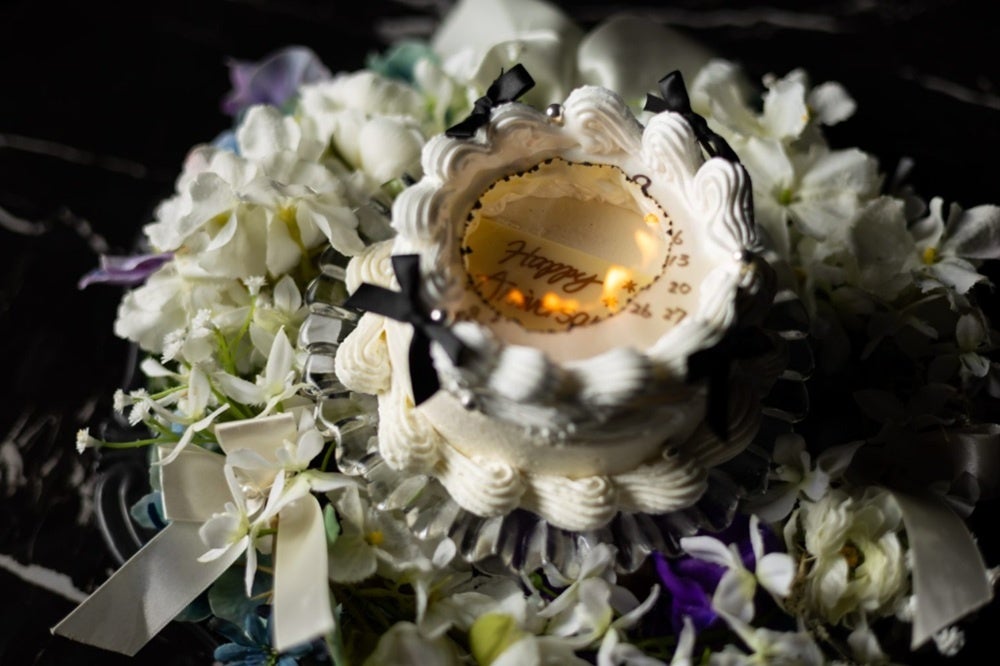 ・ケーキ上部(燃えるシートの下)には「Happy Birthday」または「Happy Anniversary」のメッセージプレートをお付けできます。当日のメッセージ内容の変更は承れませんので、あらかじめご了承ください。