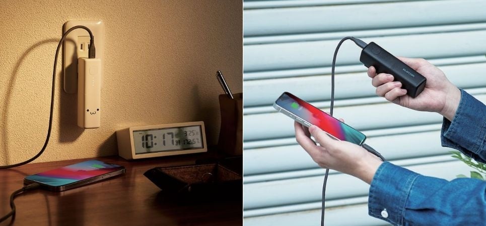 家でも外出先でも、スマートフォンの充電はこれ1台にお任せ!1台2役で使えるAC充電器一体型モバイルバッテリーを新発売