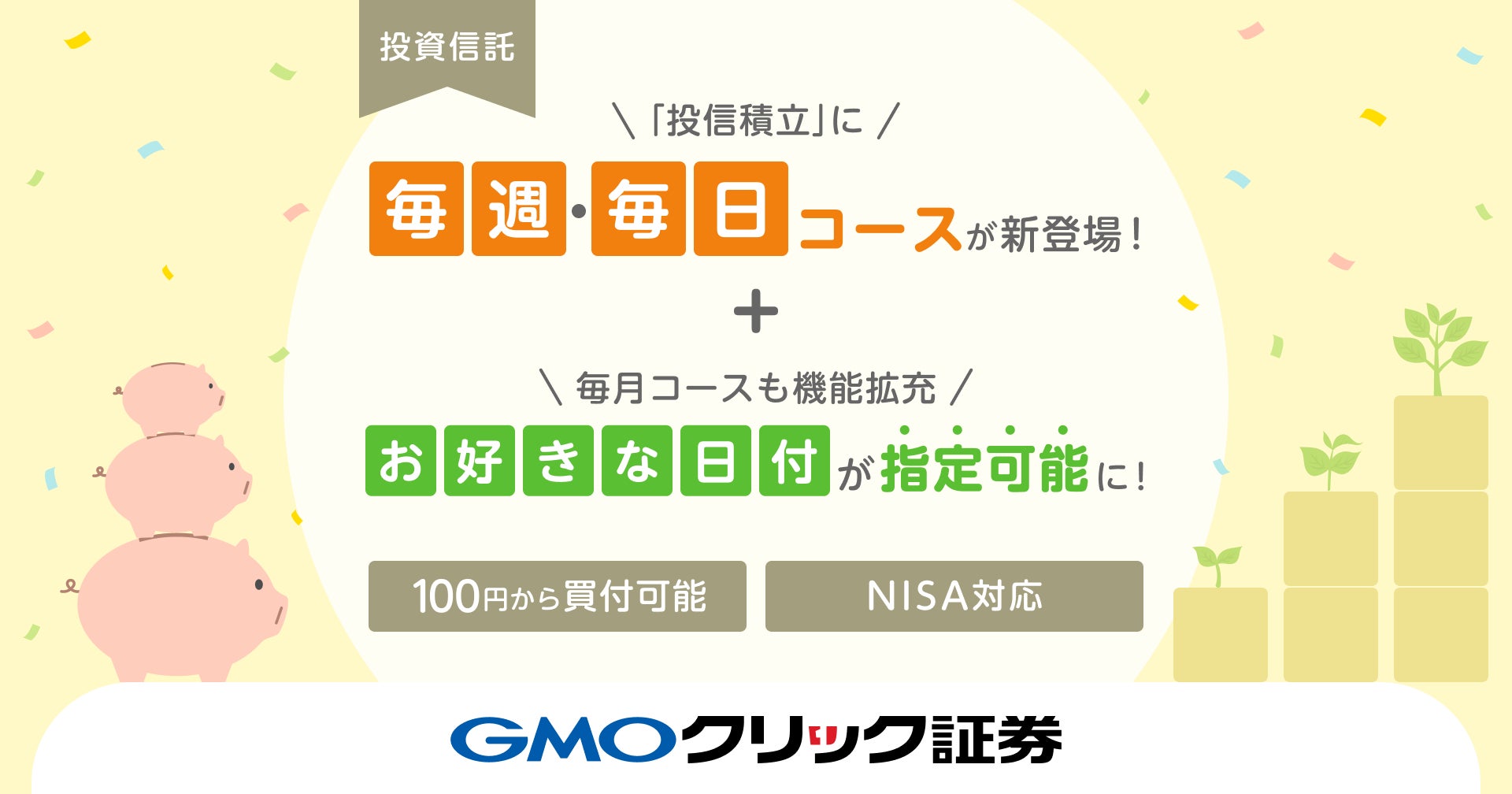GMOクリック証券:100円から投資できる「投信積立」に毎週・毎日コースが新登場
