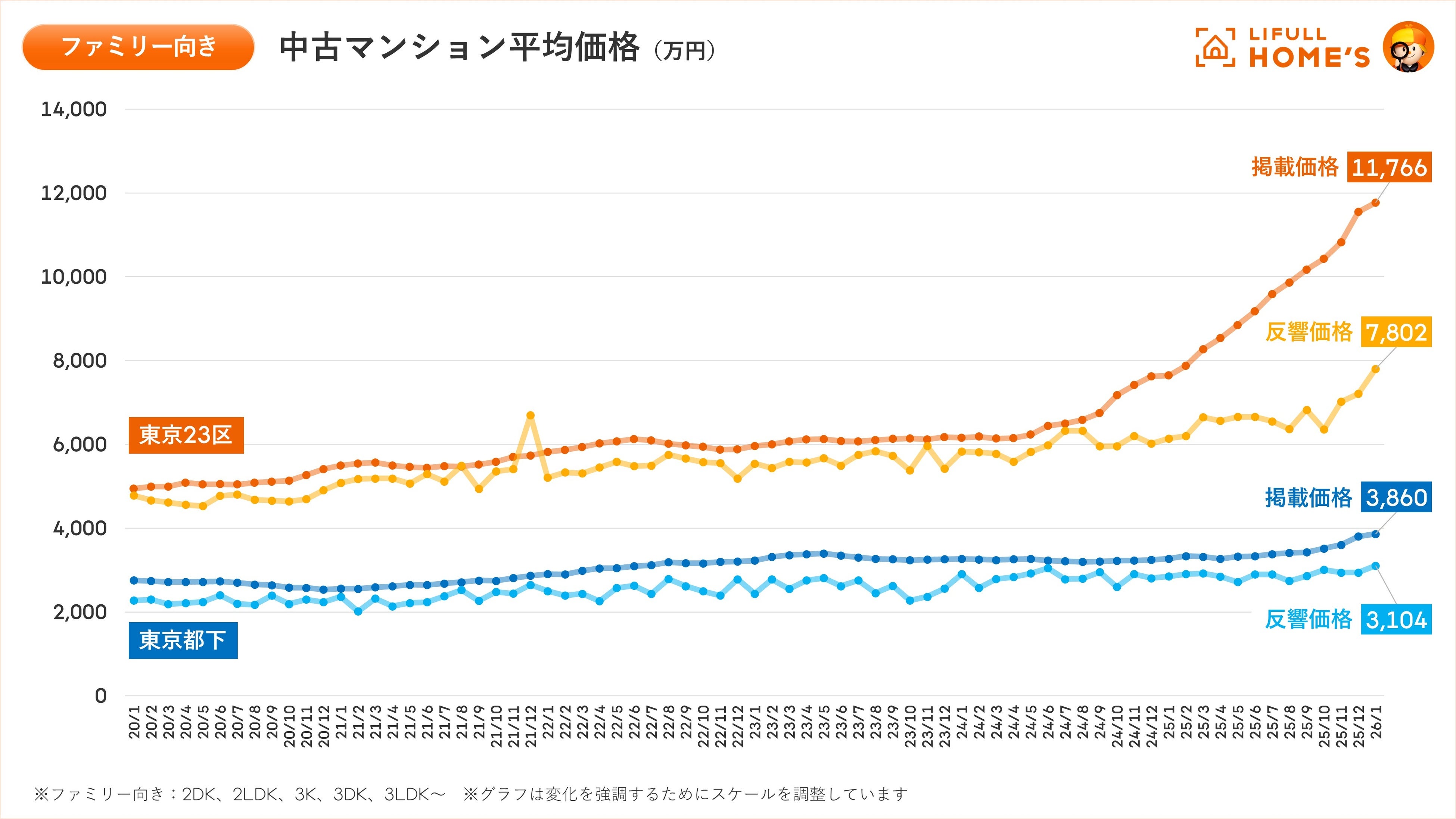 【価格動向】東京23区の中古マンション価格はファミリー・シングルともに「過去最高」を更新、ファミリー向き中古マンション価格は22か月連続で上昇