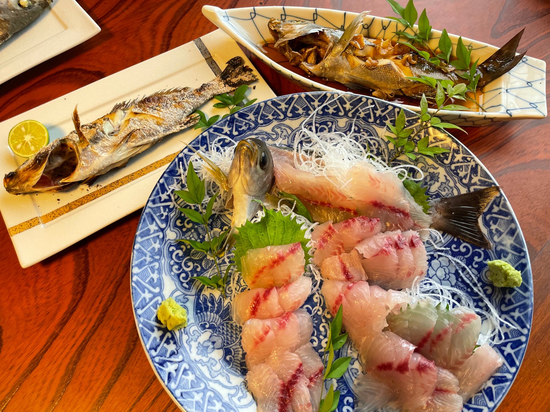 12:00 飲食店へ釣った魚を持ち込み、ランチメニューの相談