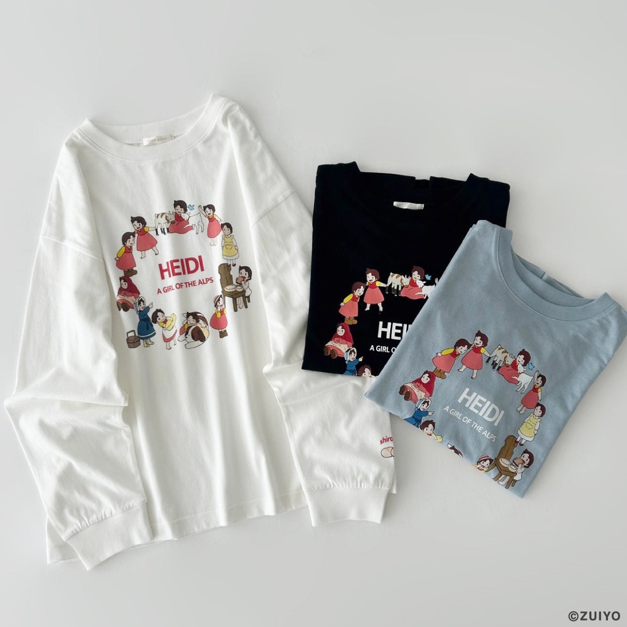 ~「ハイジ」の名場面をプリントしたロンTや子山羊の「ユキちゃん」柄アイテムなど全6型~