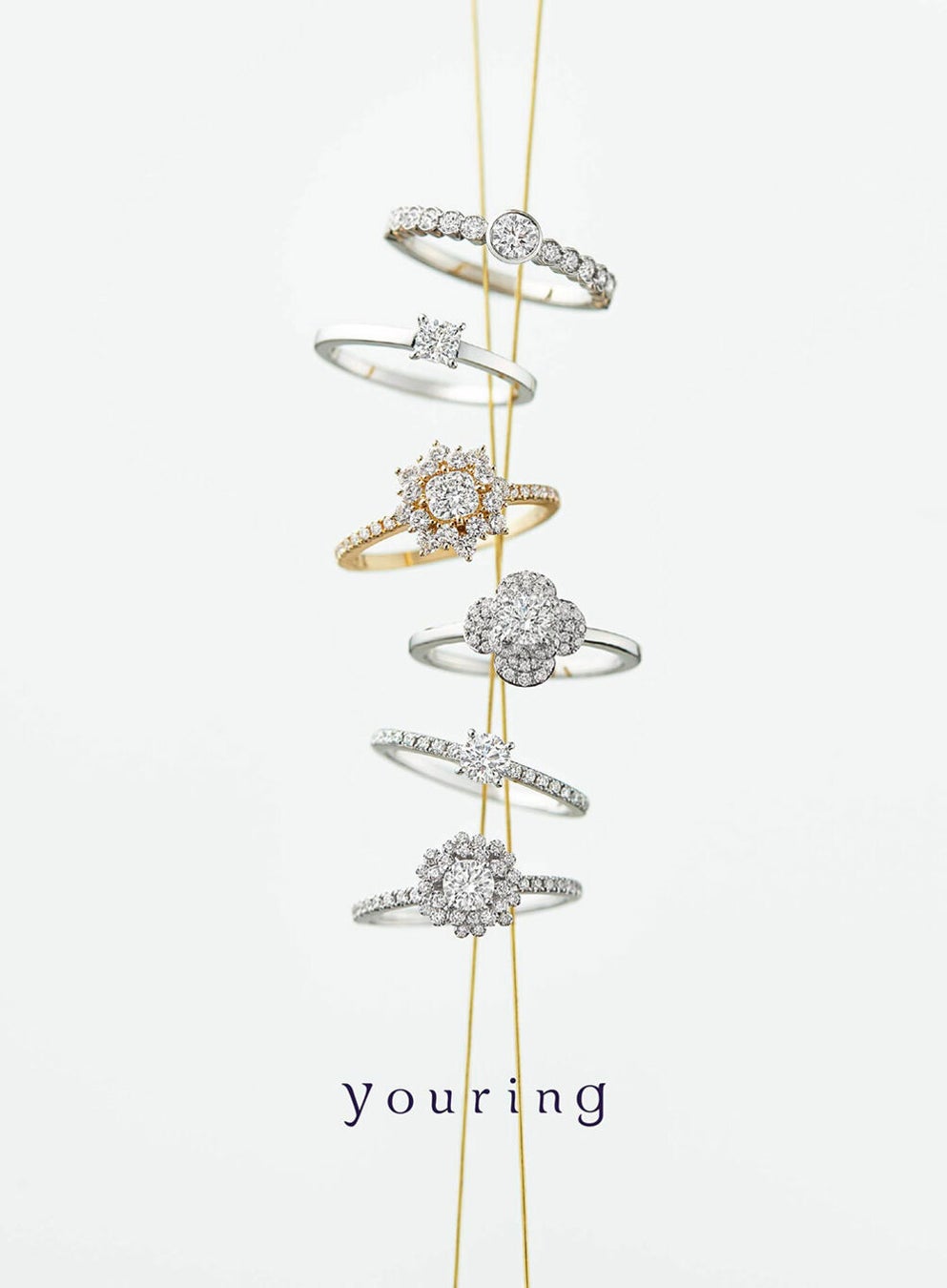 ”your”と”ring”を重ねた造語がブランド名になっている〈youring〉。「結納と結婚、人生を結ぶ」という意味から、 結(ゆう)ring という意味も持っている。 「大切な人を想う」その想いをブランドと指輪にこめてブライダルリングを制作している。