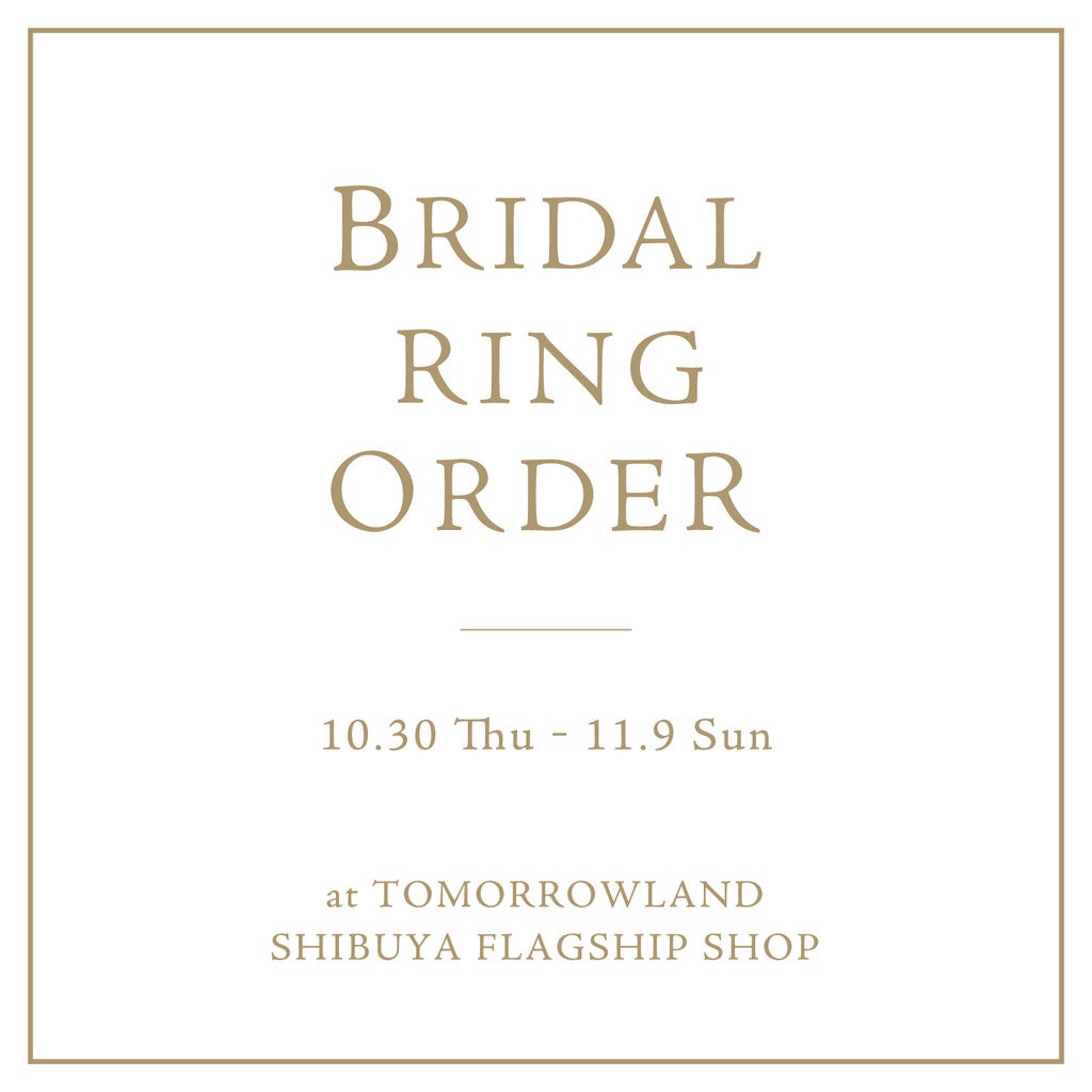 トゥモローランド 渋谷本店では、人気ジュエリーブランドが一堂に集う『ブライダルリングオーダー』を10月30日(木)〜11月9日(日)に開催します。