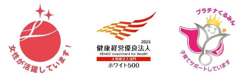 1.多様な人材の活躍に重要である、従業者の健康、子育て支援、女性活躍推進に関する3つの認定を取得 2.健康経営優良法人2025(ホワイト500)に4年連続で認定 3. 女性活躍推進法に基づく「えるぼし認定」を初めて取得(2段階目) |