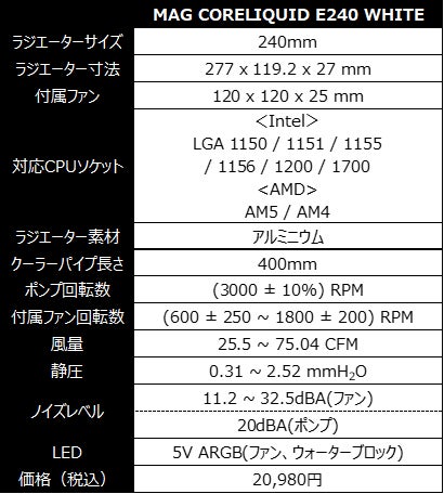 【MAG CORELIQUID E240 WHITE】:税込20,980円