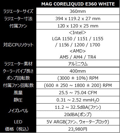 【MAG CORELIQUID E360 WHITE】:税込23,980円