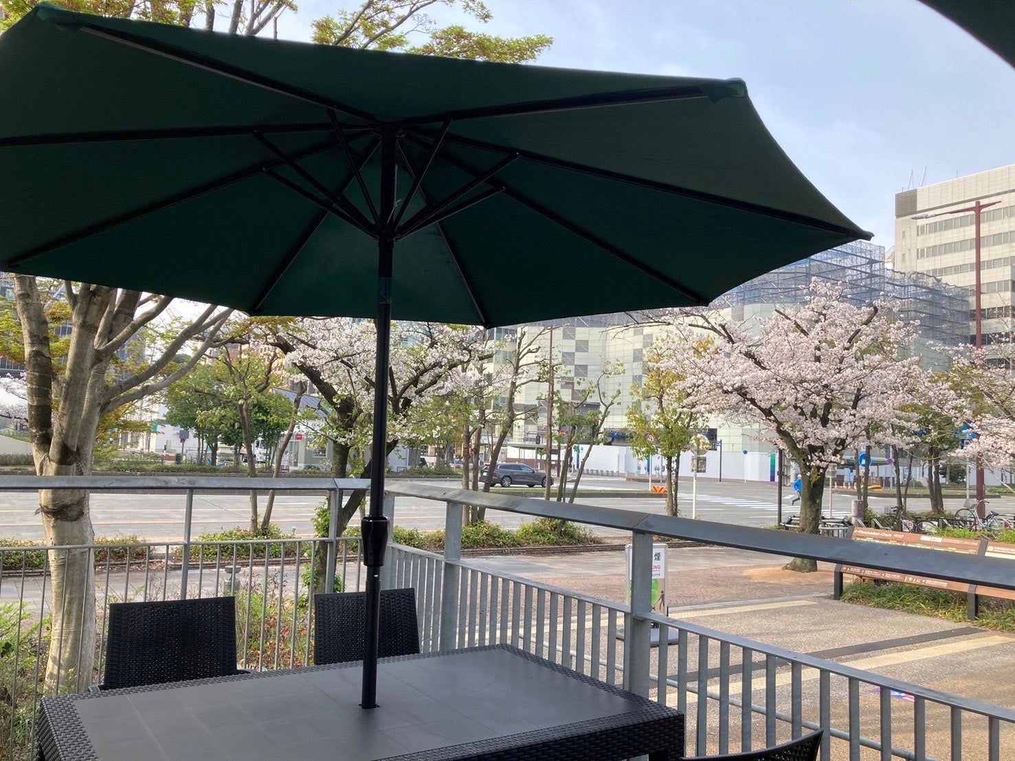 新しくなったテラス席にはパラソル完備ですので日差しを気にすることなく、桜をお楽しみいただけます♪