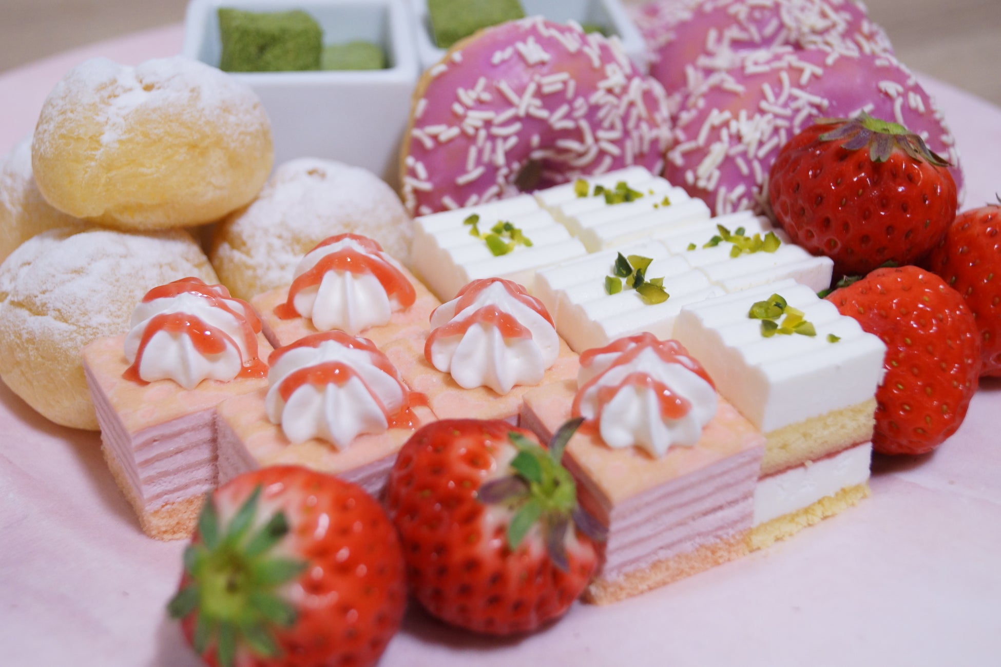 お料理は、春が旬の食材を使用した「桜海老と菜の花のピザ」や「ハンバーグと筍のグラタン」をはじめ、奥丹波どりを使用したシェフオリジナル唐揚げをご用意しております。唐揚げは、おろしポン酢やヤンニョムチキン、トリュフ塩等10種類の食べ方が楽しめる、この春一番のおすすめ料理です。また、女性やお子様にも嬉しいカラフルでかわいいミニドーナッツやミニムースケーキ等のデザートも日替わりでご用意しております。