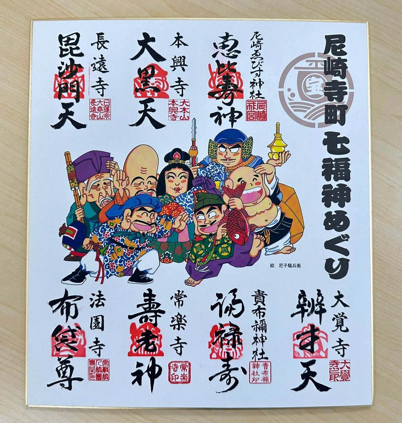 七つの福運を受けられると言われている七福神めぐり。尼崎寺町七福神めぐりでは、尼崎出身の尼子騒兵衛先生の朱印用オリジナル色紙が販売されているので、その色紙を片手に各寺社で七福神のスタンプ(※2)を集めていきます。