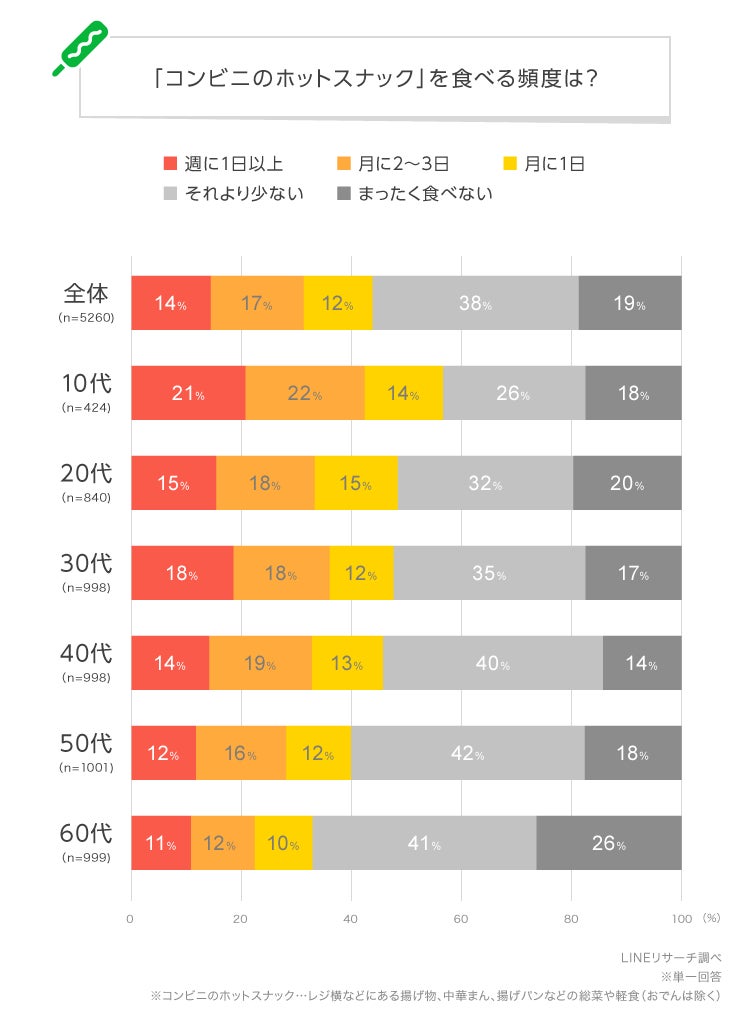 LINEリサーチ、全国の10〜60代を対象に、コンビニのホットスナックに関する調査を実施