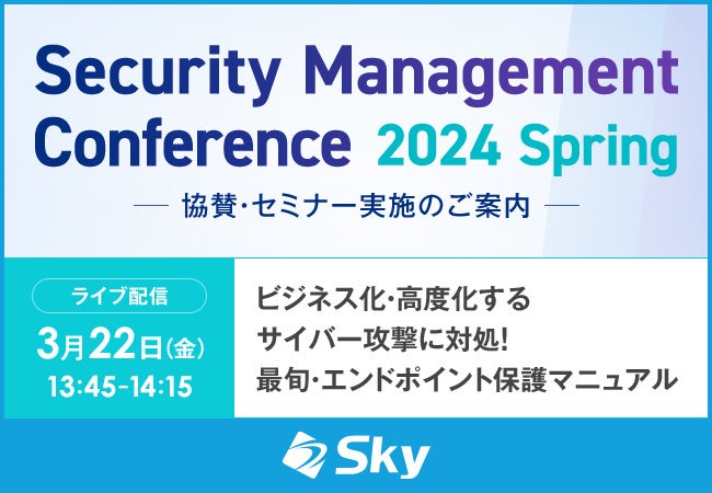 Sky株式会社は2024年3月21日(木)~3月22日(金)にWebセミナー(Live配信)として開催される「Security Management Conference 2024 Spring(主催:SBクリエイティブ株式会社(ビジネス+IT))」に協賛いたします。