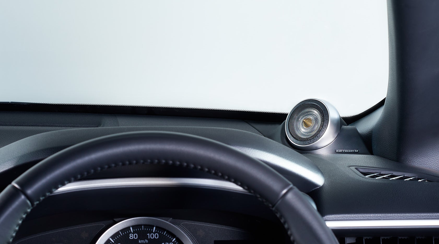 車室内に溶け込む高品位デザインを採用した本取付キットは、カロッツェリアの適合トゥイーターと組み合わせることで、専用設計ならではの最適な音場とスムーズな高域再生を実現します。